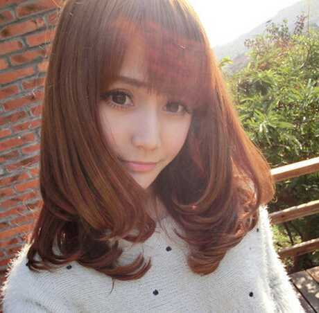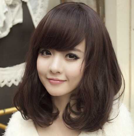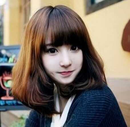 中长梨花头发型图片5、依然是超可爱的中长梨花头发型,齐刘海,发梢处的卷曲,让这款发型更有活力更青春,看起来乖乖的,真的是乖乖女必备的发型哦!