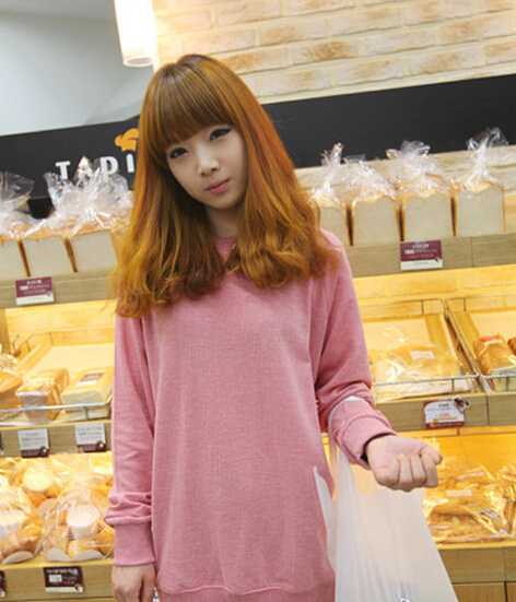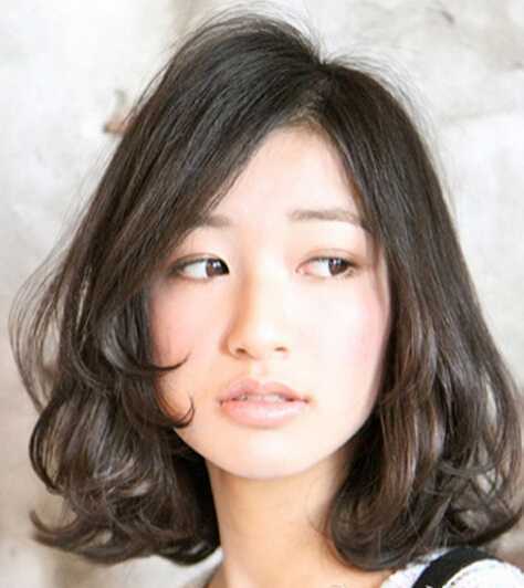 2015梨花烫发型图片5、齐刘海和中长梨花烫发型搭配,发尾的蓬松空气感既修颜又能增加可爱感,其实齐刘海和梨花烫的发型很搭,出来的效果会更甜美可爱,婴儿肥的女生可以尝试一下。