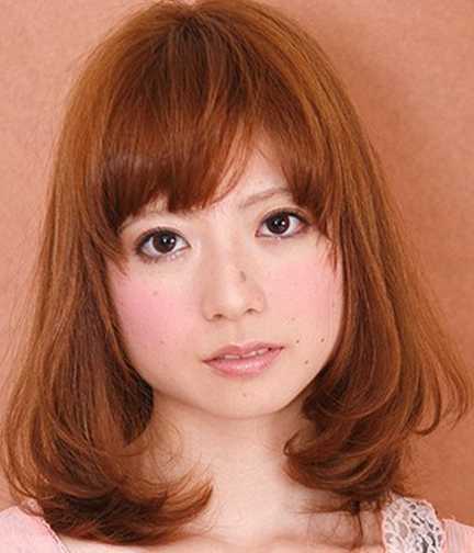 斜斜的短刘海及眉,露出迷人的大眼睛,两边的刘海碎发随意搭在两颊上,起到修颜的作用,发尾的梨花烫卷打造出层次感,金黄发色也提升了时尚感。