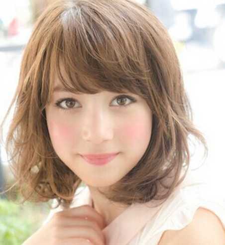 这款造型十分甜美,内秀的短刘海显露出女孩那一张精致的脸蛋,微微的烫卷很是可爱,蓬蓬的造型更添灵动,挑染黄棕发色简约又好看。