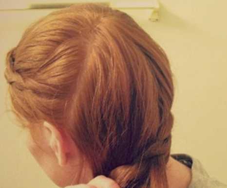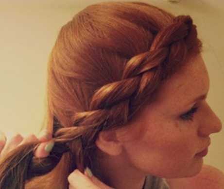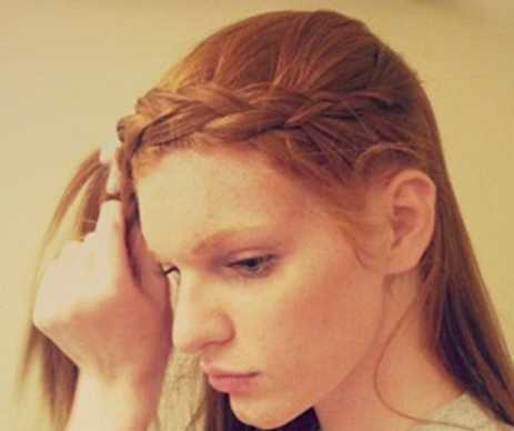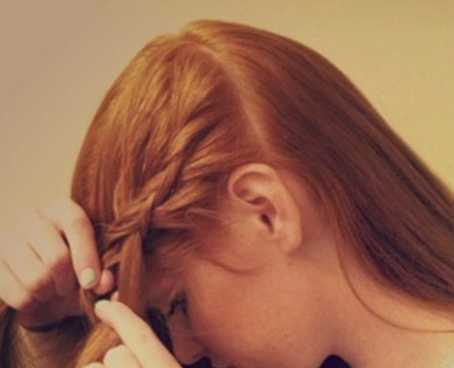 step2:一直沿着额头将前面的刘海编成麻花辫,编得时候每步都要加入新的发束。