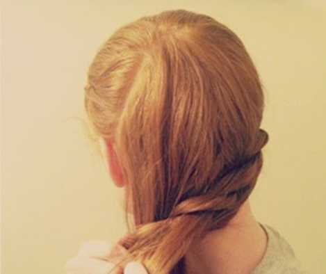 step4:前面的编完后,将后面的头发也编成麻花辫。