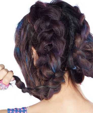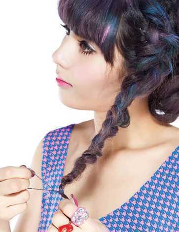 step1:将一头长发编成凌乱蓬松的辫子。