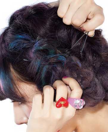 喜欢盘发?嘻嘻...首选的当然是甜美、可爱的盘发造型啦!甜美可爱的女生总是最吸引人的,下面分享的是彩色盘发造型步骤。