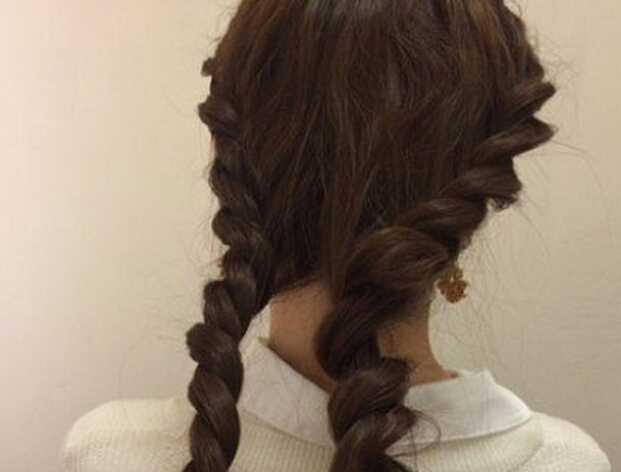 3、而另一侧的头发也按照同样的步骤扭转发辫。