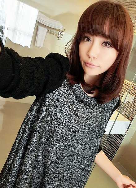 这款韩式的啡色齐刘海短烫发发型真的十分时尚哦!齐刘海的打造就是甜美十足,两颊短卷发尾彰显出俏皮一面,非常不错哟!