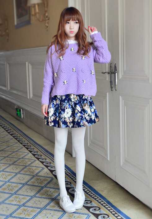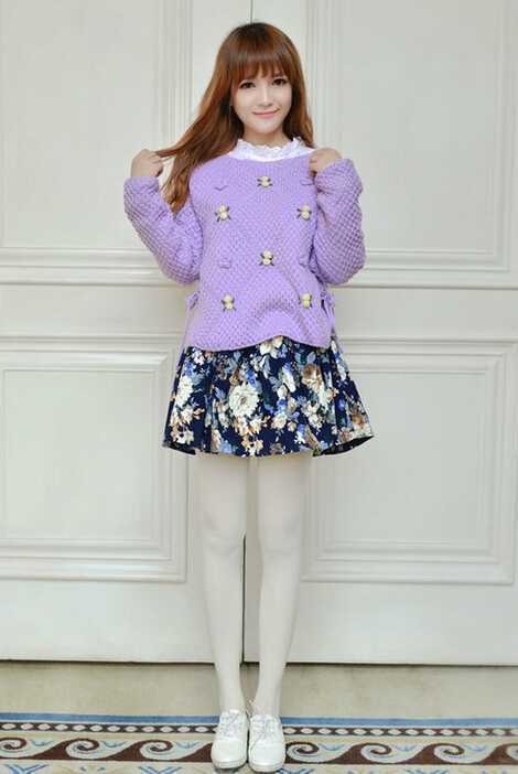甜美时尚达人都是搭配蝴蝶结系带甜美毛衣和大碎花半裙,来衬托出浪漫的中长发烫发,瞬间甜美气质让人心动不已哦!