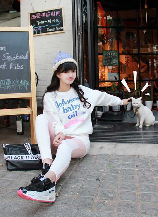 加绒长袖卫衣OR假两件渐变色拼接打底裤绝对是甜美达人服装的专属哦!搭配上发型,简直好看到爆了哦!