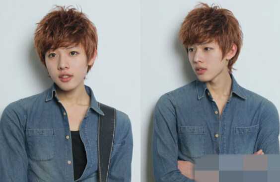 细碎的短发在经过烫卷后显得蓬松有型,从视觉上增加发量,完美修饰头型和脸型,搭配斜分得刘海塑造出韩式花美男形象,亮泽棕色的发色使整体发型看上去更加时尚帅气。