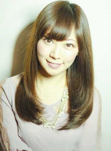 一款非常适合圆脸美眉的离子烫长发发型,长至脸颊的中分刘海稍稍外翻,挡住肉肉的两颊,令你瞬间拥有巴掌小脸,披肩的长直发尽显自然唯美,搭配由深至浅的染发颜色,随性慵懒,女神范十足。