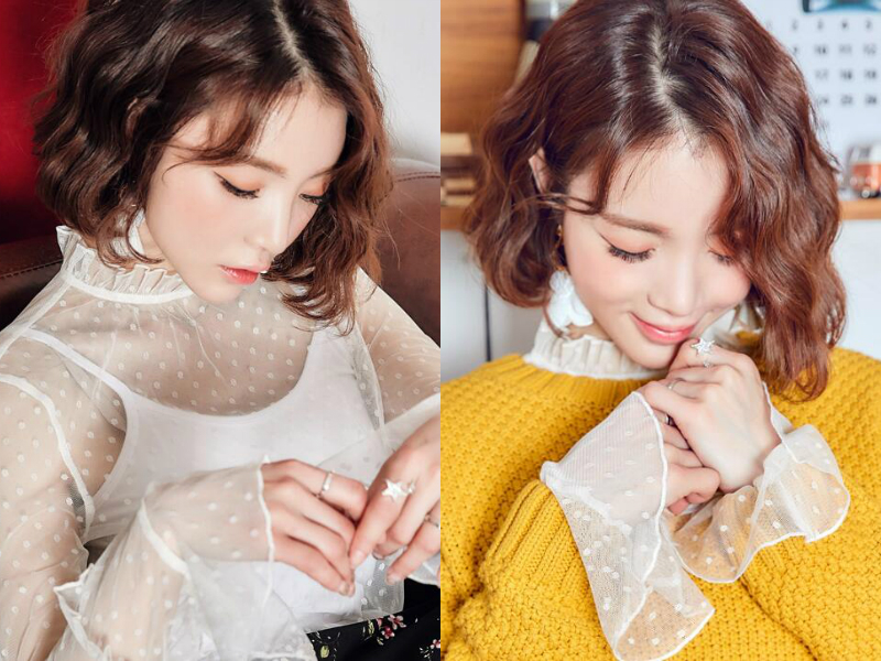 妹子一头精致的短发看起来蓬松轻盈,三七分的刘海设计使得发量两边不对称,多的一侧挡住侧脸显得脸型完美,加入纹理烫效果后发丝充满波浪般起伏的弧度,发量好像瞬间增长,使得整个造型更加立体有型。
