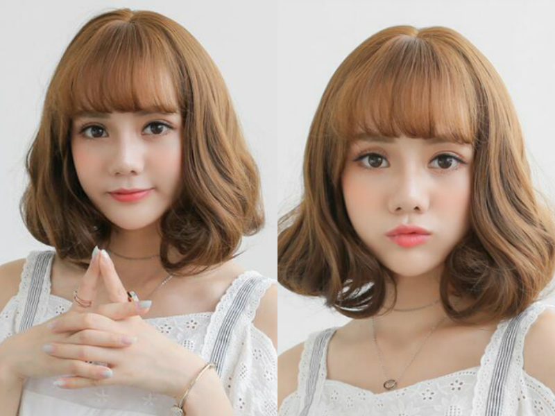 这款梨花烫非常的有魅力,齐耳的短发做起来最好看,发尾弄卷往内扣,稍带点不规则的凌乱,两侧发丝很有弧度的弯曲,紧紧包裹脸颊,很好的修饰了脸型,另外弯弯内扣的空气刘海增加了气质,配合时尚的染色,温柔中带着甜美可爱。