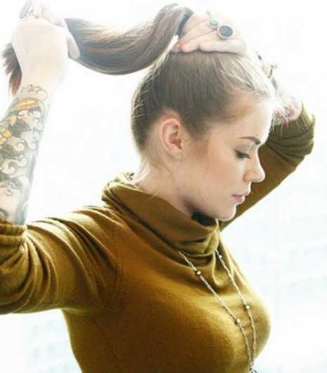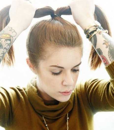 步骤七:将另外一把头发合起来,一起卷绕在马尾的根部。