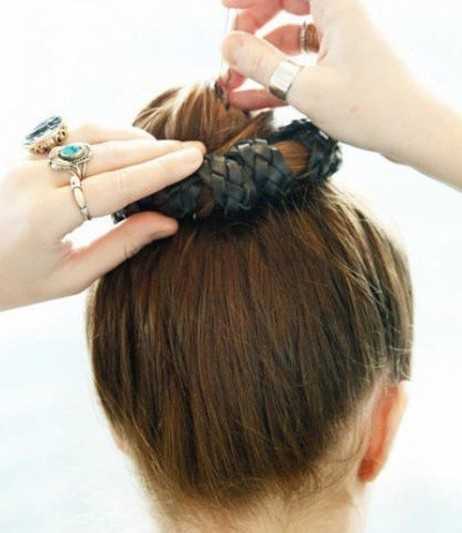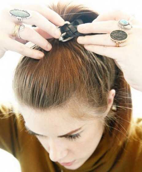 步骤八:最后用大号的固定夹子固定,这样就完成了个性的皮带丸子头咯!