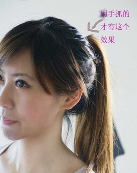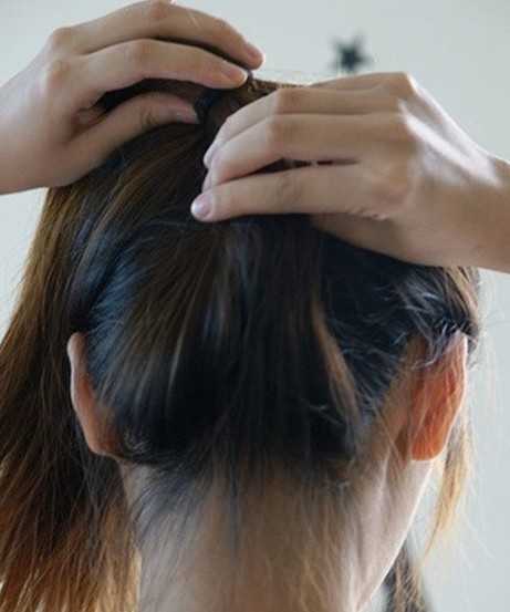 步骤二:头顶处想要制造出蓬松感,就用手抓松下。