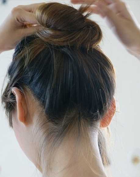 好啦!固定后,一个简单又清爽的丸子头发型就打造出来了。