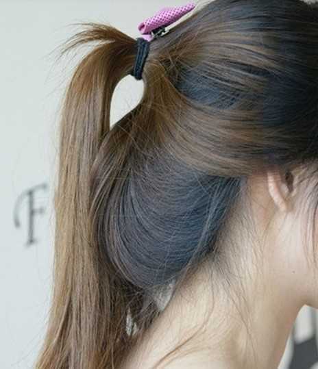 步骤六:扭转后,围绕着扎发的根部绕圈。