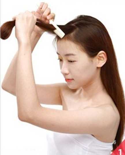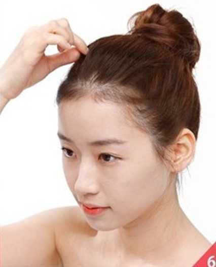 步骤六:为了使发型显得更加自然,用手把头顶的头发轻轻拉扯一下,就会显得蓬松自然的啦。