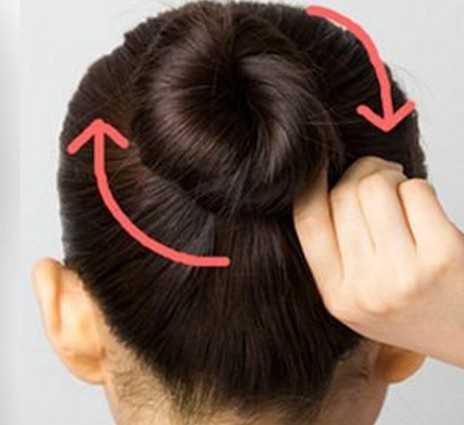 5、按顺时针的方向把头发盘在马尾的根部位置,弄成一个发髻形状,最好盘紧实点哦!