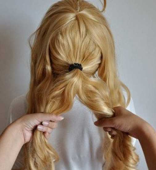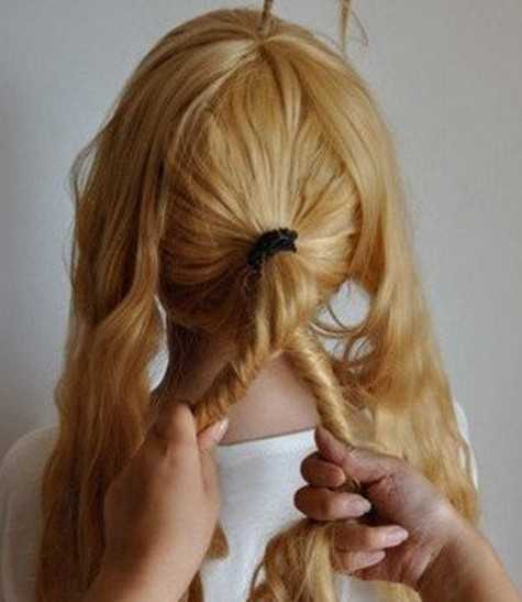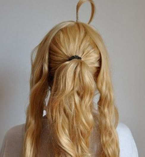 2、将头发分为三部分,然后把中间的部分头发扎出一个简单的马尾形状