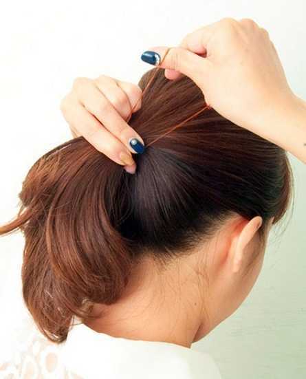 步骤三:将扎好的马尾顺时针扭转。
