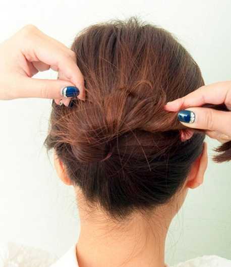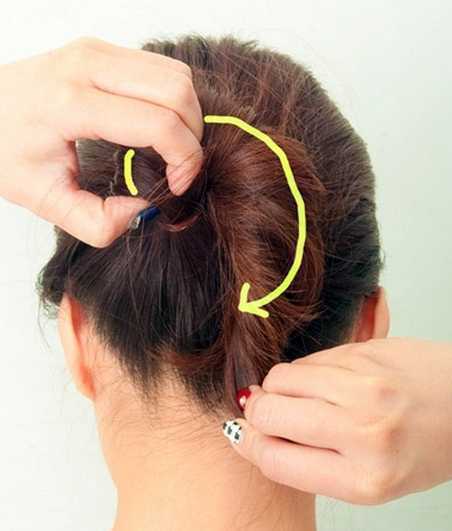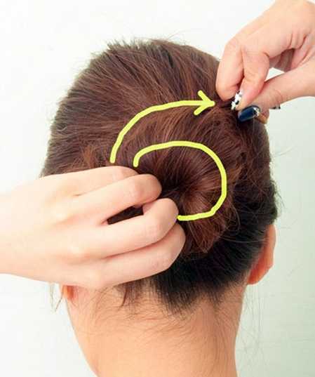 步骤五:之后将发辫顺时针扭转成丸子头。