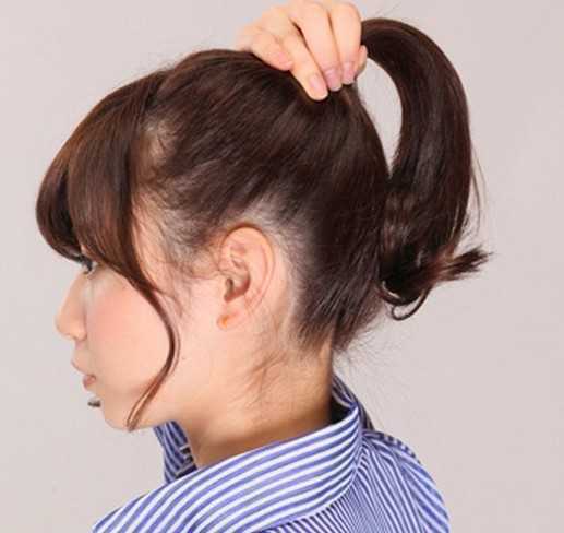 1、先留出部分刘海,在脑后扎个高马尾发辫。