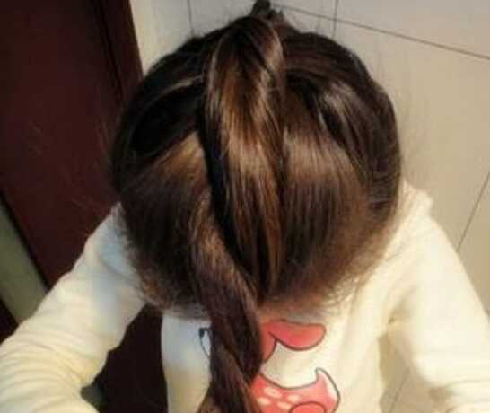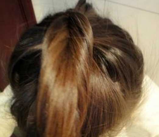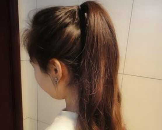 步骤二:将长卷发高高扎成一个马尾,图示。