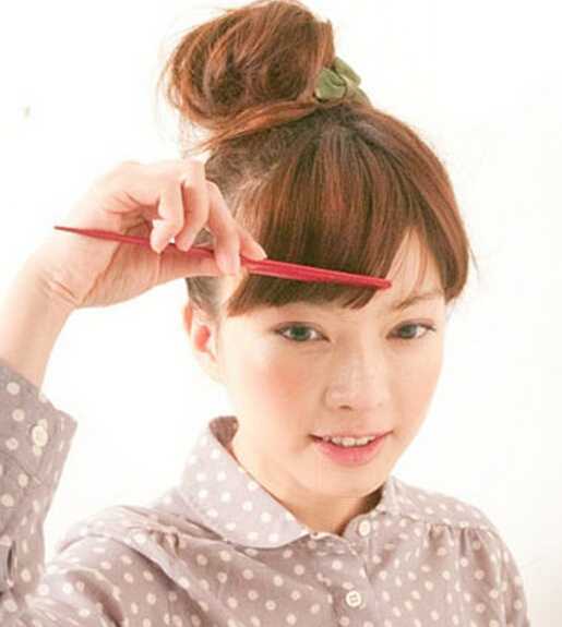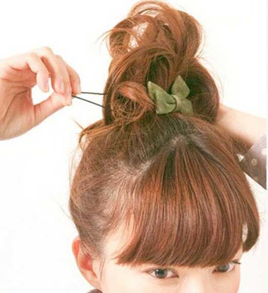 步骤八:一款清新可爱学生丸子头扎发就搞定了。