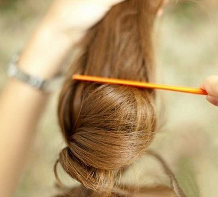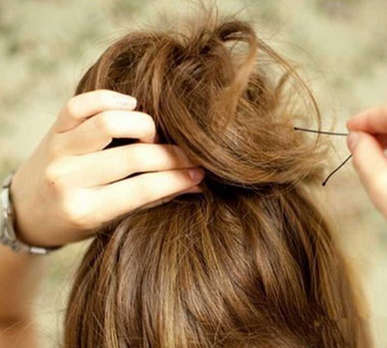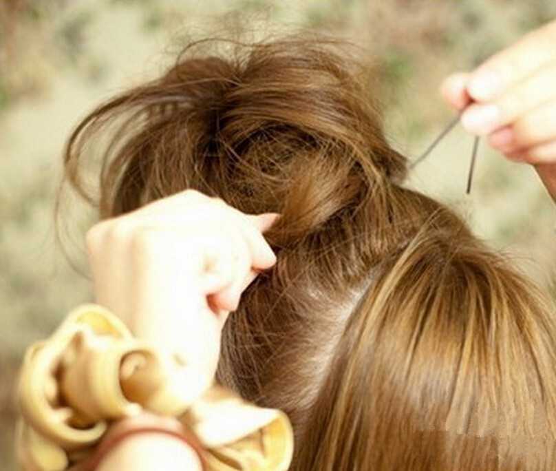 步骤四:还需要将丸子头表层散乱的头发理顺。