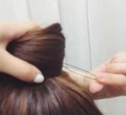 步骤4、绑完后用发绳扎一下,固定好,或者也可以用黑色小发夹固定一下;