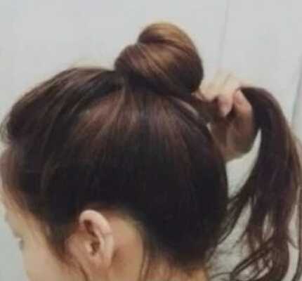 好了,这款简易丸子头扎发就出来了,简单好看,居家必备款哦!