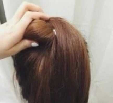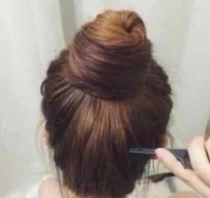 步骤5、丸子头出来的形状大概是这样,可以用尖头梳稍微挑一下后面的头发,让它呈现出一定的蓬松感,后脑勺会更饱满更好看哦!