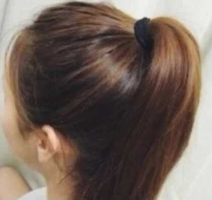 步骤1、先扎一条高马尾,图中的扎发是无刘海的马尾扎发,当然你也可以留点刘海;