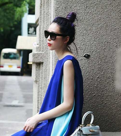 2、出街想要个性、摩登一点?那头发颜色则是重中之重,挑染高冷一点的颜,如蓝、紫、绿等,效果如图,头发被扎成丸子头,头发颜色聚集在发髻,丸子成了重点,这样的发型不仅个性好看还百看不腻!