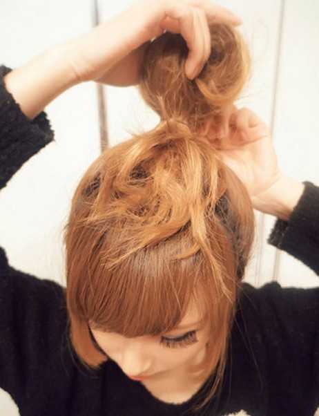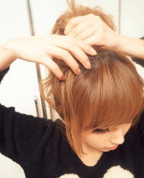 步骤三:这是将发尾留在后面的,用手抓松下,扎起来的头发,使它看起来更加蓬松。