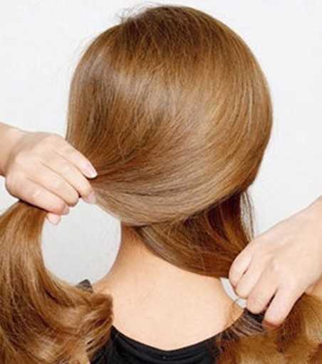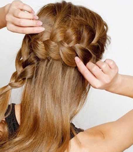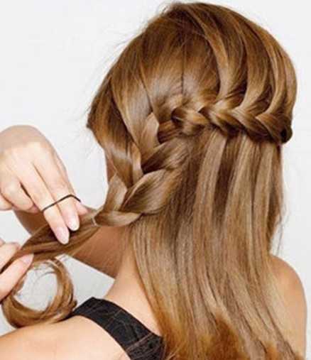 步骤二:将左手边的头发发辫效果,编到发尾时候就用发圈固定。