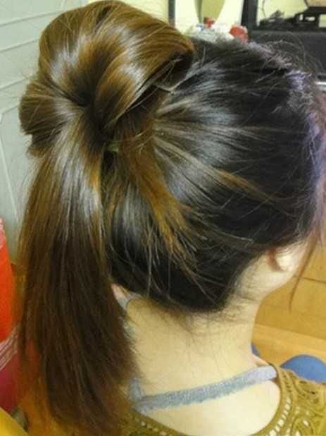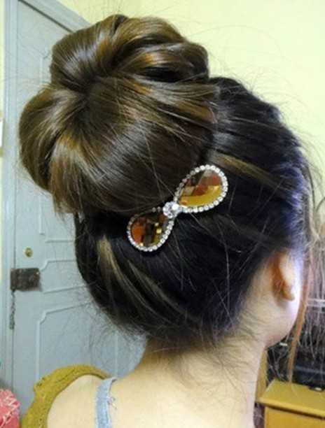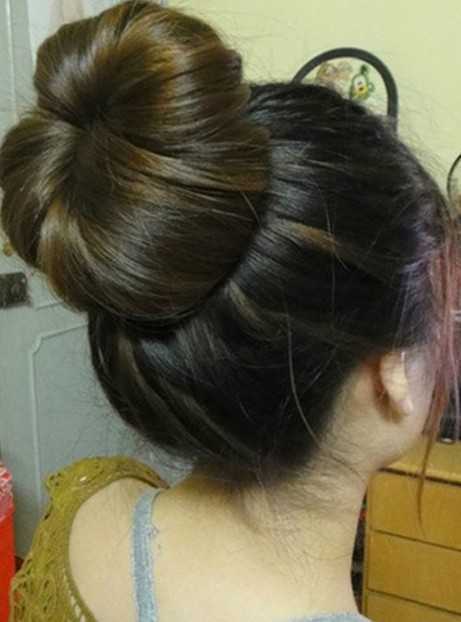 步骤四:头发全部夹好之后,花苞头的形状就出来了。