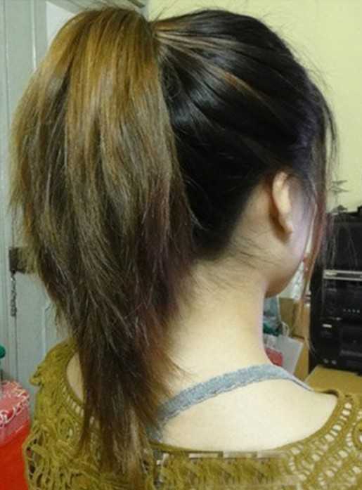 步骤二:从马尾上方中抽出一小撮头发,将头发向上卷,卷好后用发夹子固定。