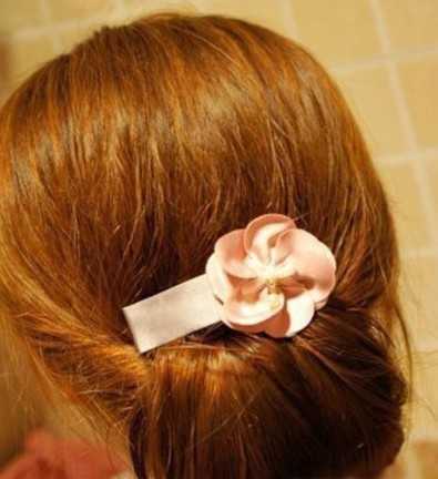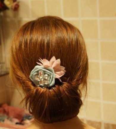 步骤五:将头发挽在扎头发处,然后用发夹将头发固定。