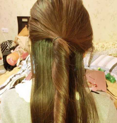 图解二:先把上部分的头发用小橡皮筋扎成一个小马尾。