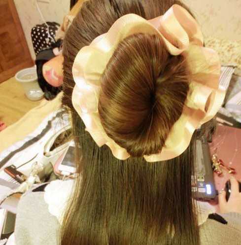 图解六:最后一小步非常的简单,只需要在花苞上装饰一个大大的发饰就OK啦!超韩式的公主头扎发,有没有瞬间秒杀了你眼睛呢?一起学起来吧。