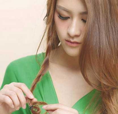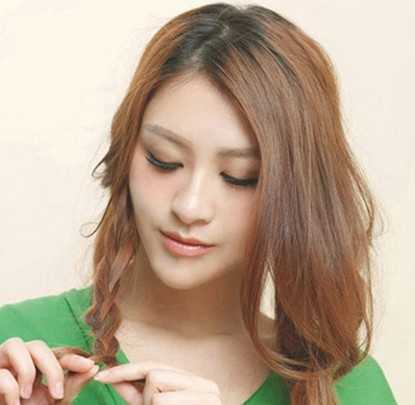 步骤二:在一边取一束头发编成发辫形状。