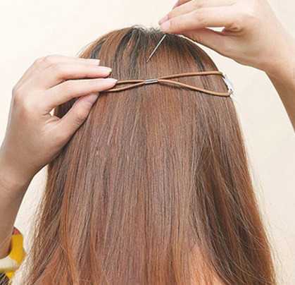 步骤四:将发尾围绕着皮筋绕一圈,遮住皮筋。