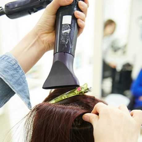 step1:首先将头发分成两部分,用吹风机一束一束的吹出蓬松感。