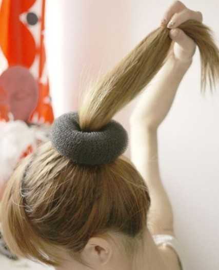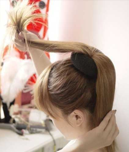 1、先是留出部分刘海,再把其余的头发使用大发圈高扎出马尾形状。