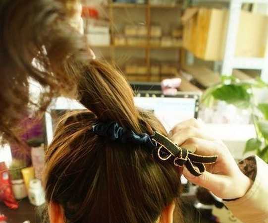4、最后使用自己喜爱的发卷把剩余的头发扎出马尾形状。