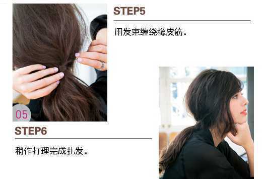 步骤三:前面留出一些刘海,再将脑后的头发扎好。