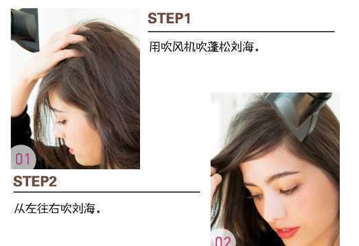 步骤一:首先用吹风机将前面的刘海吹出蓬松感。