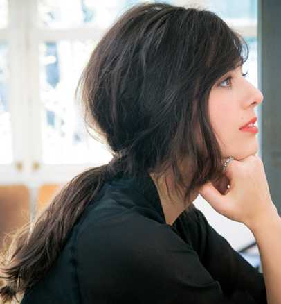 充满慵懒味道的低马尾扎发,前面有点长的刘海很好勾勒出精致的脸蛋。